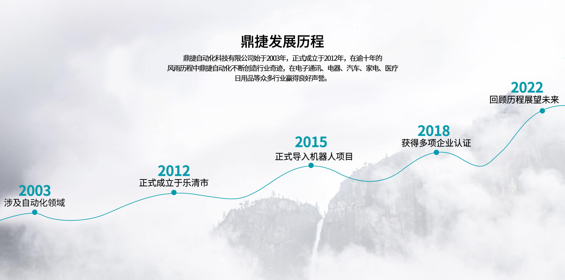 公司始于2012年,在逾十年的風雨歷程中,不斷創造行業奇跡,在電子通訊、電器、汽車、家電、醫療、日用品等眾多行業贏得良好聲譽。公司坐落于浙江省樂清經濟開發區,現有人員63人,擁有經驗豐富的工程技術研發團隊11人,其中高級工程6人,具備本科以上學歷高級工程人員比例78%;同時鼎捷自動化在蘇州,東莞等地設立分公司以服務目標市場客戶,目前鼎捷自動化已經為下客戶提供配套自動化解決方案:泰科、安費諾、莫士、華為、中興、普聯、智英、意華、德豐、公牛、萬事達、華豐、飛雕、普思、冠聯、俊朗松田、進聯、高正、盛凌等。鼎捷自動化專業從事連接器、開關及相關電子、電器、五金、塑膠產品組裝自動化定制、設計、制造、銷售。2012年,鼎捷自動化正式導入機器人應用項目,可為各類客戶提供電子、電器、汽車、五金、塑膠等集成自動化智能組裝系統。